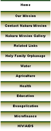 The Catholic Diocese of Nakuru Mission Office (USA), is based at St. Agatha’s parish in Canastota, NY, and was created in 2000 by Bishop James Moynihan of the Roman Catholic Diocese of Syracuse and Bishop Peter Kairo of the Catholic Diocese of Nakuru (Kenya, Africa). In support of this cooperative agreement, Bishop Kairo agreed to send some African priests to the US to serve for various periods of time in the Syracuse Diocese. In turn, the Syracuse Diocese agreed to familiarize its parishioners with the extreme poverty and lack of resources in Africa and to setup a mission to raise funds to counter those needs. As defined for the State of New York and the IRS, the CDN Mission Office is a charitable, non-profit 501-c3 organization whose charter provides funds to the Catholic Diocese of Nakuru (Kenya, Africa) to provide food for the starving, medicines for the sick, clean water and food preparation for consumption, educational facilities for children, orphanages for street children and abandoned infants, mobile medical facilities and spiritual fulfillment. |